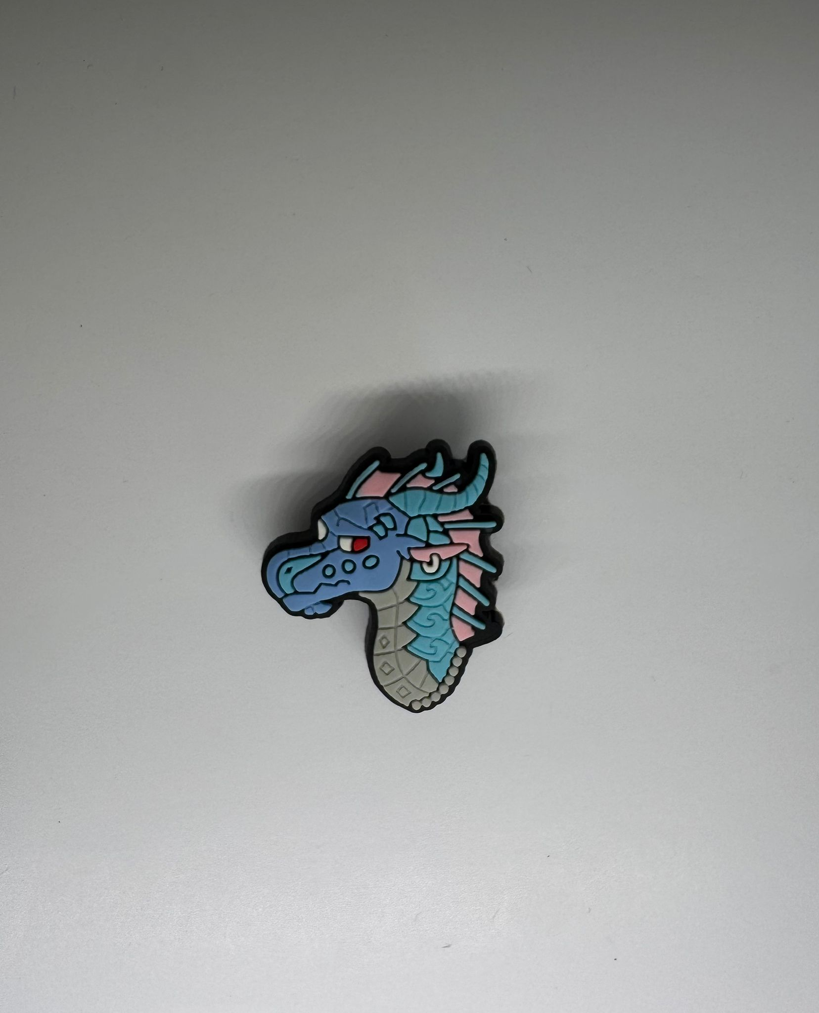 Show your love for mythical creatures with this adorable design featuring a whimsical blue dragon with pink and turquoise accents. With its playful expression and detailed scales, this charm brings a touch of magic and wonder to your everyday adventures - perfect for dreamers and dragon enthusiasts alike!